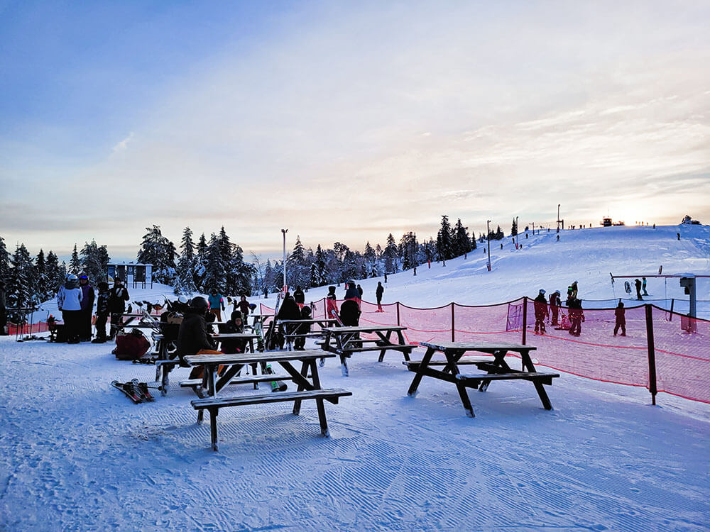 Boven bij de liften vind je ook nog een kleine kiosk, die verschillende soorten hotdogs verkoopt. Zweden zijn hier dol op en wij ook.